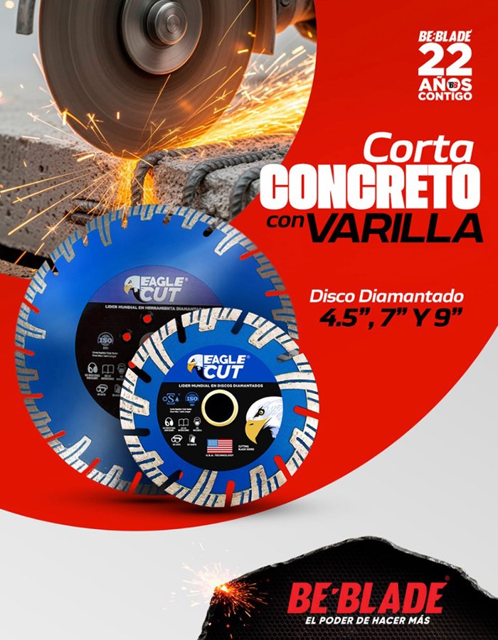 El concreto con hierro, o concreto reforzado es un material muy utilizado en la construcción. Por eso la importancia del Disco BE BLADE CH GRAN; ya que son pocos los discos diamantados que cortan concreto con hierro.